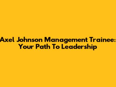 Axel Johnson Management Trainee: Your Path To Leadership