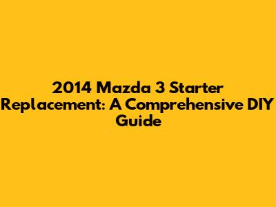 Replacing the starter on your 2014 Mazda 3 can be a rewarding DIY project. By following this guide, you should be able to complete the job successfully and save a considerable amount of money. Remember to always prioritize safety and take your time. If you feel uncomfortable with any step, don't hesitate to seek help from a qualified mechanic.