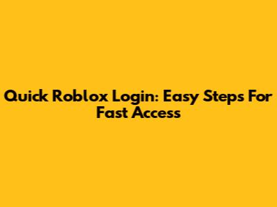 Quick Roblox Login: Easy Steps For Fast Access