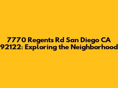 Hey guys! Ever wondered about the area around 7770 Regents Rd in sunny San Diego, CA 92122? Well, buckle up because we're about to dive deep into everything this vibrant location has to offer. From the local vibe to the nitty-gritty details, let’s get started!