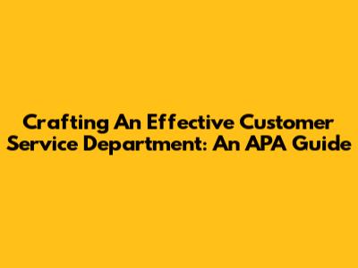 Crafting An Effective Customer Service Department: An APA Guide