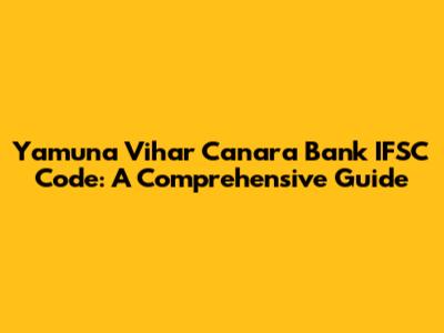 Yamuna Vihar Canara Bank IFSC Code: A Comprehensive Guide