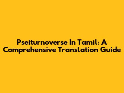 Pseiturnoverse In Tamil: A Comprehensive Translation Guide