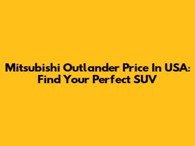 Mitsubishi Outlander Price In USA: Find Your Perfect SUV