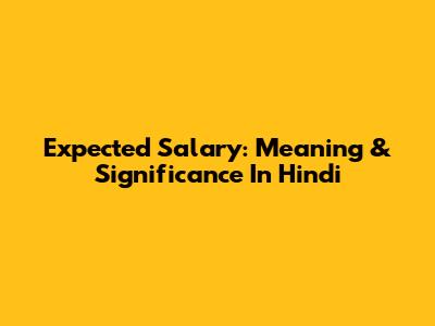 Expected Salary: Meaning & Significance In Hindi