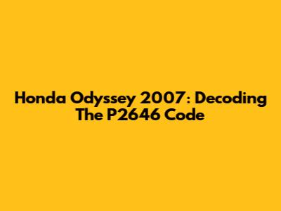 Honda Odyssey 2007: Decoding The P2646 Code