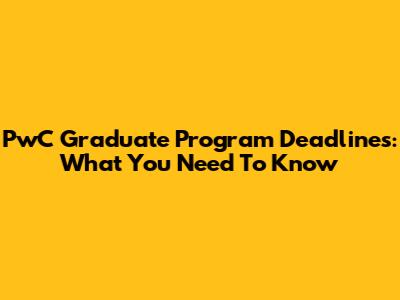 PwC Graduate Program Deadlines: What You Need To Know