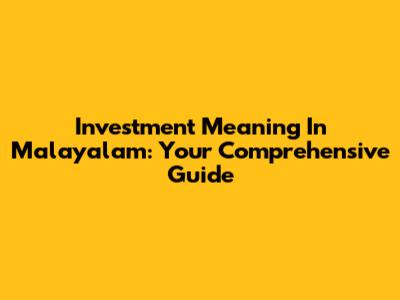 Investment Meaning In Malayalam: Your Comprehensive Guide