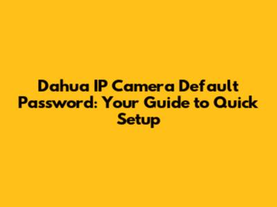 Understanding the Dahua IP Camera Default Password