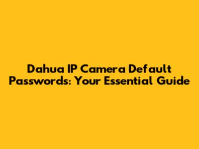 Understanding Dahua IP Camera Default Passwords