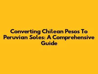 Converting Chilean Pesos To Peruvian Soles: A Comprehensive Guide
