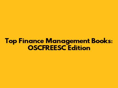 Top Finance Management Books: OSCFREESC Edition