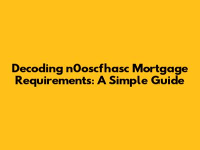 Hey everyone! Navigating the world of mortgages can feel like trying to decipher ancient hieroglyphics, right? Especially when you come across terms like "n0oscfhasc." Don't worry, we're going to break down those n0oscfhasc mortgage requirements into plain English, so you can confidently approach your home-buying journey. We'll cover everything from what it actually means, why it matters, and how to get yourself prepped and ready to roll. So, grab a coffee, settle in, and let's demystify these mortgage mysteries together!