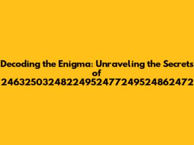 Hey guys, let's dive into something a bit mysterious today, shall we? We're going to crack the code and explore what's behind the sequence 24632503248224952477249524862472. I know, it looks like a jumble of numbers, but trust me, there's a story here. This isn't just a random string; it's a potential key to understanding something complex. We'll be using a mix of investigative techniques and a dash of creativity to uncover its secrets. This exploration is all about problem-solving and critical thinking. We'll be breaking down the elements, looking for patterns, and trying to figure out what this numerical sequence could represent. It's like being a detective, except instead of a crime scene, we have this intriguing sequence to decipher. We'll try different approaches, from mathematical analysis to looking for hidden meanings within the numbers themselves. So, buckle up, grab your thinking caps, and let's get started on this exciting journey of discovery. It's all about figuring out the underlying message or purpose, even if it seems a bit abstract at first. The journey to unraveling this sequence might seem a bit challenging, but the reward of understanding the hidden meaning is definitely worth it.