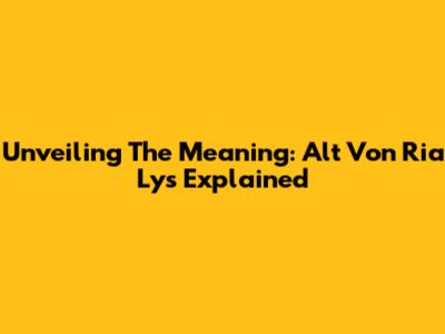 Unveiling The Meaning: Alt Von Ria Lys Explained