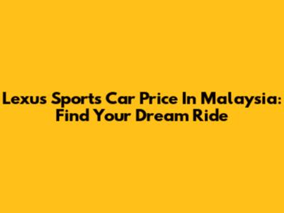 Lexus Sports Car Price In Malaysia: Find Your Dream Ride