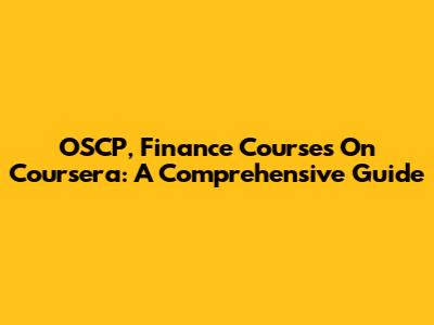 OSCP, Finance Courses On Coursera: A Comprehensive Guide