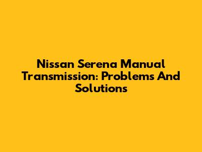 Nissan Serena Manual Transmission: Problems And Solutions