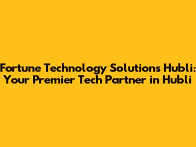 Why Choose Fortune Technology Solutions Hubli? Key Benefits