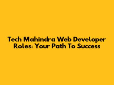 Tech Mahindra Web Developer Roles: Your Path To Success