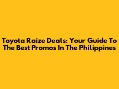 Toyota Raize Deals: Your Guide To The Best Promos In The Philippines
