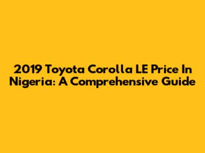 2019 Toyota Corolla LE Price In Nigeria: A Comprehensive Guide
