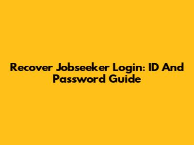 Recover Jobseeker Login: ID And Password Guide