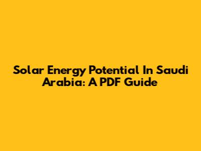 Solar Energy Potential In Saudi Arabia: A PDF Guide