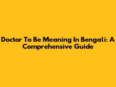 Doctor To Be Meaning In Bengali: A Comprehensive Guide