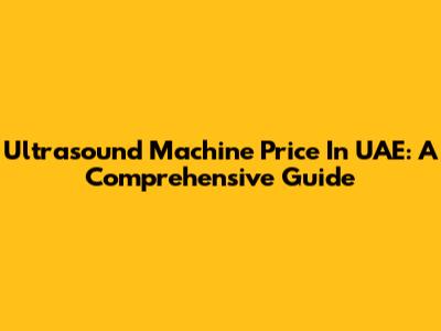 Ultrasound Machine Price In UAE: A Comprehensive Guide