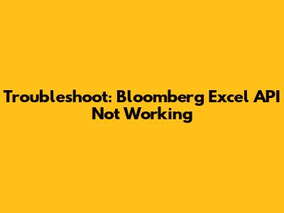 Troubleshoot: Bloomberg Excel API Not Working