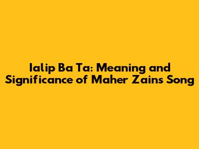 Ialip Ba Ta: Meaning And Significance Of Maher Zain's Song