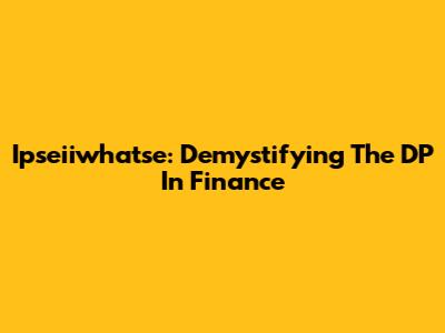 Ipseiiwhatse: Demystifying The DP In Finance