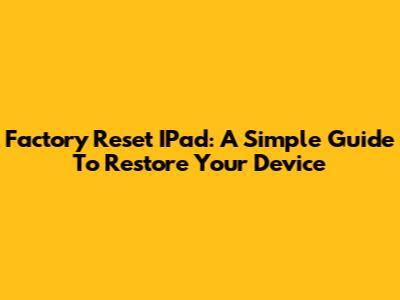 Factory Reset IPad: A Simple Guide To Restore Your Device