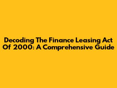 Decoding The Finance Leasing Act Of 2000: A Comprehensive Guide