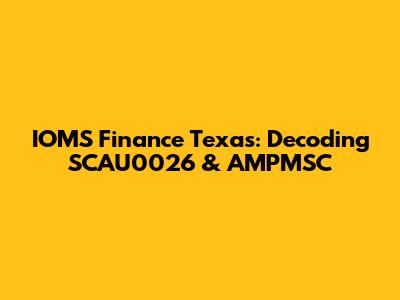 Hey everyone! Ever stumbled upon "IOMS Finance Texas" and scratched your head? Or maybe you've encountered those cryptic codes, SCAU0026 and AMPMSC, and wondered what they actually mean? Well, you're in the right place! We're going to break down everything you need to know about IOMS Finance in Texas, exploring those codes, and making sure you're well-informed. Let's dive right in, shall we?