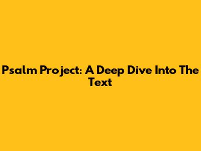 Psalm Project: A Deep Dive Into The Text