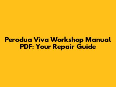 Perodua Viva Workshop Manual PDF: Your Repair Guide