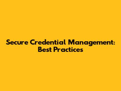 Secure Credential Management: Best Practices