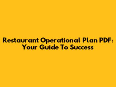 Restaurant Operational Plan PDF: Your Guide To Success