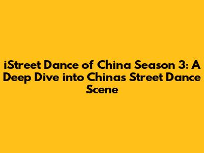 Hey everyone, are you ready to groove? Let's dive headfirst into the electrifying world of iStreet Dance of China Season 3! This show is more than just a dance competition; it's a vibrant celebration of street dance culture, showcasing some of the most talented dancers China has to offer. For those of you who might be new to this, iStreet Dance of China is a massively popular reality show that brings together dancers from all across the country to compete in various street dance styles. Think of it as China's answer to some of the biggest dance shows, but with its own unique flavor and flair. Season 3, in particular, was packed with incredible performances, fierce competition, and unforgettable moments, making it a must-watch for any dance enthusiast. This season brought in amazing dancers from all walks of life. I was glued to the screen every week, and the level of skill and artistry just blew me away. From popping and locking to hip-hop and breaking, the variety of styles on display was truly remarkable. The judges' panel, the choreographers, and everyone involved elevated the show to a whole new level. So, grab your snacks, get comfortable, and let's explore everything that made iStreet Dance of China Season 3 so special.