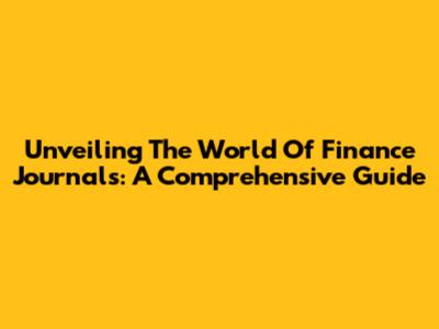 Unveiling The World Of Finance Journals: A Comprehensive Guide