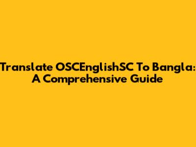 Translate OSCEnglishSC To Bangla: A Comprehensive Guide