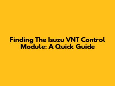 Finding The Isuzu VNT Control Module: A Quick Guide