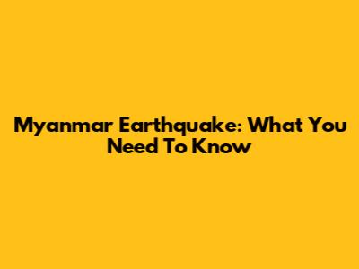 Myanmar Earthquake: What You Need To Know
