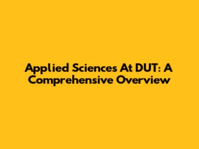 Applied Sciences At DUT: A Comprehensive Overview