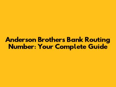 Anderson Brothers Bank Routing Number: Your Complete Guide