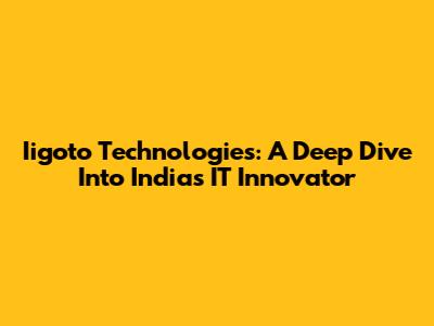 Iigoto Technologies: A Deep Dive Into India's IT Innovator