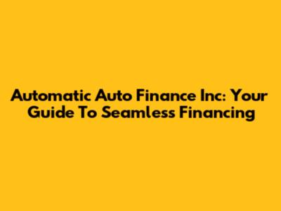 Automatic Auto Finance Inc: Your Guide To Seamless Financing