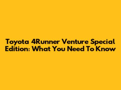 Toyota 4Runner Venture Special Edition: What You Need To Know